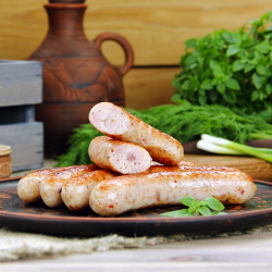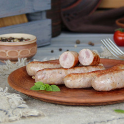 Фарш делается из мяса фермерских поросят и бычков возрастов не более 18 месяцев. Не допускается использование химикатов, пищевых добавок и методов увеличения массы. Органический продукт.