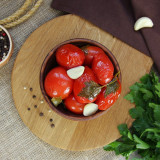 Органические маринованные томаты обязательно оценят по достоинству все любители овощных консервов. Они отличаются сочной мякотью, насыщенным вкусом и характерным ярким ароматом. Овощи богаты витаминами группы В, Н, РР, А, содержат лимонную, яблочную и винную кислоту, йод, минеральные соли, фосфор, калий, магний и другие необходимые для здоровья микро и макроэлементы. Они способствуют укреплению костной и мышечной ткани, улучшают работу органов сердечно-сосудистой системы и ускоряют обмен веществ, являются мощным природным антиоксидантом.