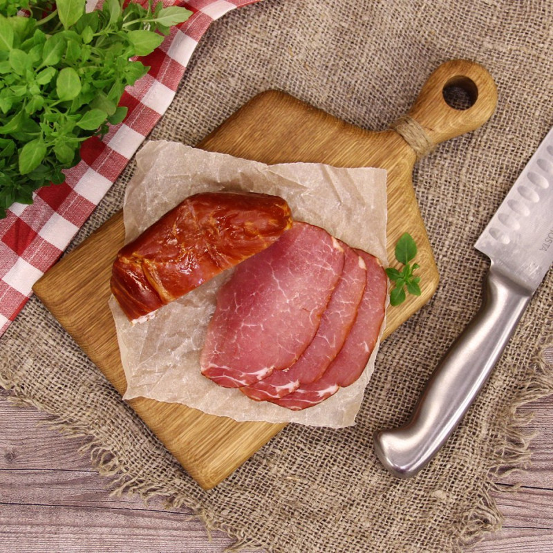 Старинное сельское угощение. По легенде слово "балык" пришло из тюркских языков и когда-то означало просто "рыба". Балыком называли спинку особо ценных пород красных рыб. Потом название распространилось на отдельные части свинины, а именно на нежное, мягкое мясо с небольшими жировыми прожилками, расположенное вдоль позвоночника поросёнка. Жира в этой части практически нет, поэтому балык считается диетическим деликатесом. Очень вкусное кушанье, подходит и как самостоятельная закуска, и как дополнение к основным блюдам. Отличается сочностью, имеет легкий аромат деревенской копчёности.