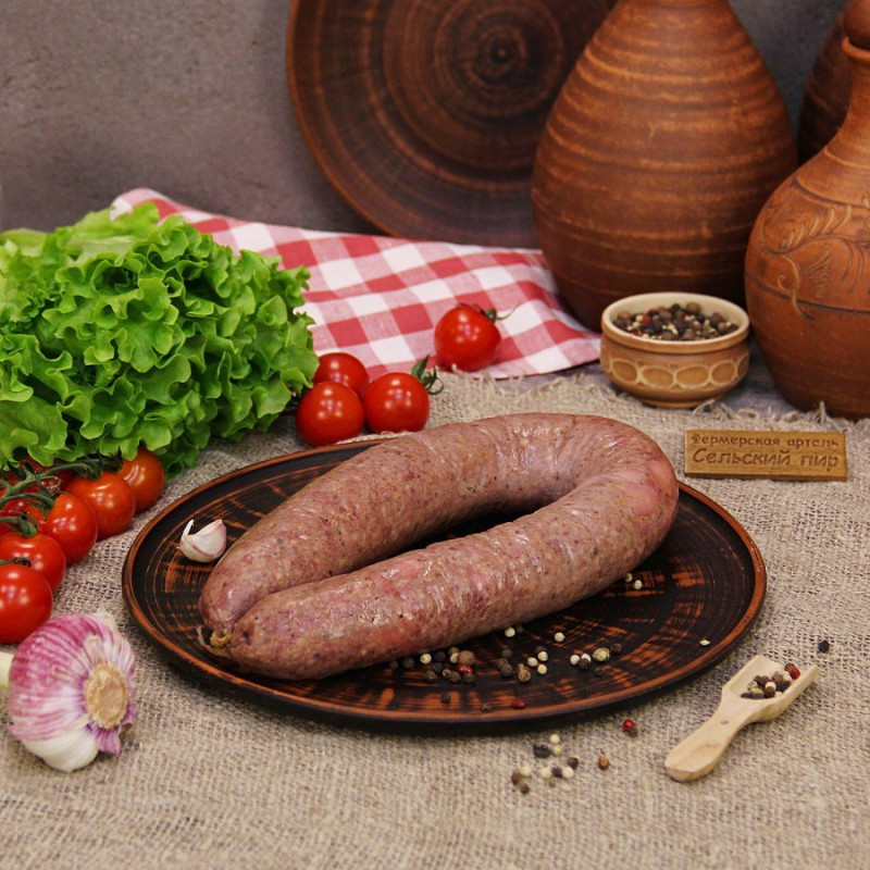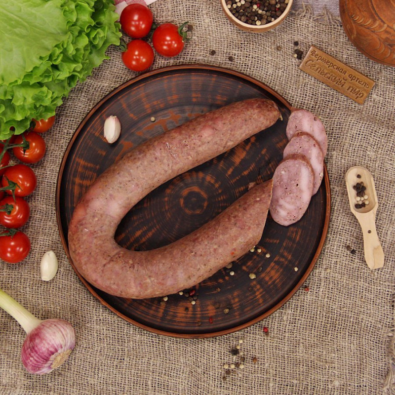 Домашняя томлёная колбаса, оттепленная в духовом шкафу при умеренной температуре, в искусственной оболочке, мягкая и умеренно сочная. Из-за невысоких температур обработки мякоть колбасы более влажная и мягкая. Колбаса прекрасно сочетается с салатами, гарнирами, омлетами. Простой бутерброд с такой колбасой и сыром прекрасно раскроет вкус этого деликатеса.