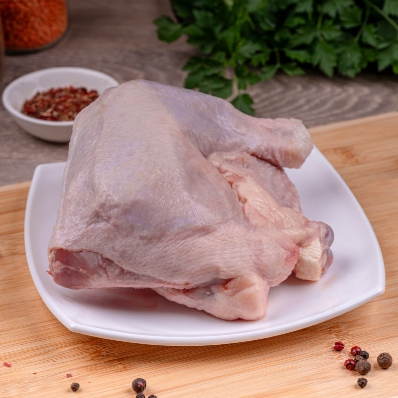 Куриный окорок – это часть тушки цыплёнка-бройлера c сочным мясом. Состоит из голени и бедра, которые можно разделить между собой ножом по хрящу. Универсальный продукт, который подходит для приготовления любым способом: его можно тушить, запекать, жарить и варить.
