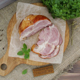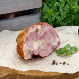 Свиная шейка находится в одном ряду со свиной вырезкой и очень ценится любителями высокой кухни, этот деликатес один из самых вкусных. Шейку также называют ошейком, это небольшой участок в начале позвоночника. Мясо на шее поросёнка очень мягкое, нежное, с небольшими тоненькими прослойками жира. Шейка выдерживается несколько дней в очень лёгком авторском маринаде, затем коптится на фруктовых дровах, поэтому мясо приобретает идеальную консистенцию. Шейка легко режется, она очень сочная. Мясо имеет едва заметный ароматный шлейф копчёного деликатеса. Прекрасно сочетается с сыром брынзой на бутербродах, также очень вкусна сама по себе. Рекомендуем резать шейку как можно более тонкими ломтиками и подавать на стол к супам, горячим блюдам. Идеальна в качестве закуски к белым полусладким винам.