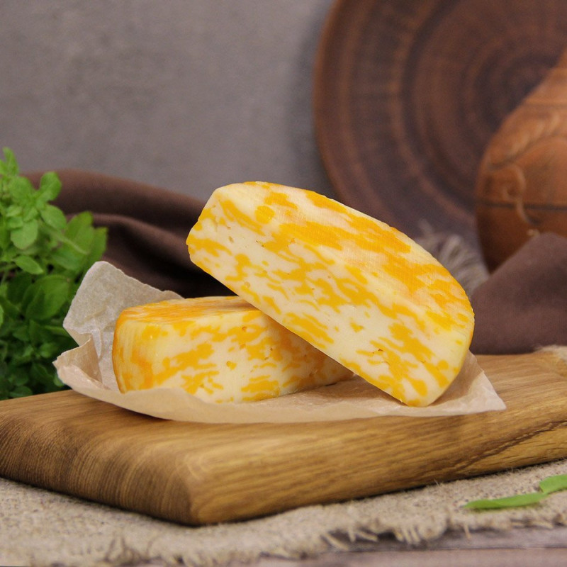 Срок созревания мраморного сыра от трёх до пяти месяцев, благодаря чему он приобретает насыщенный вкус. Делается из натурального цельного коровьего молока. В зависимости от возраста сыра вкус может немного отличаться насыщенностью. Отлично плавится. Ткань сыра ровная, без пор, имеет характерный оранжево-жёлтый тёплый оттенок. Мраморный сыр идеально подходит для бутербродов, канапе и пиццы, хорошо плавится и годится для барбекю и мангалов.